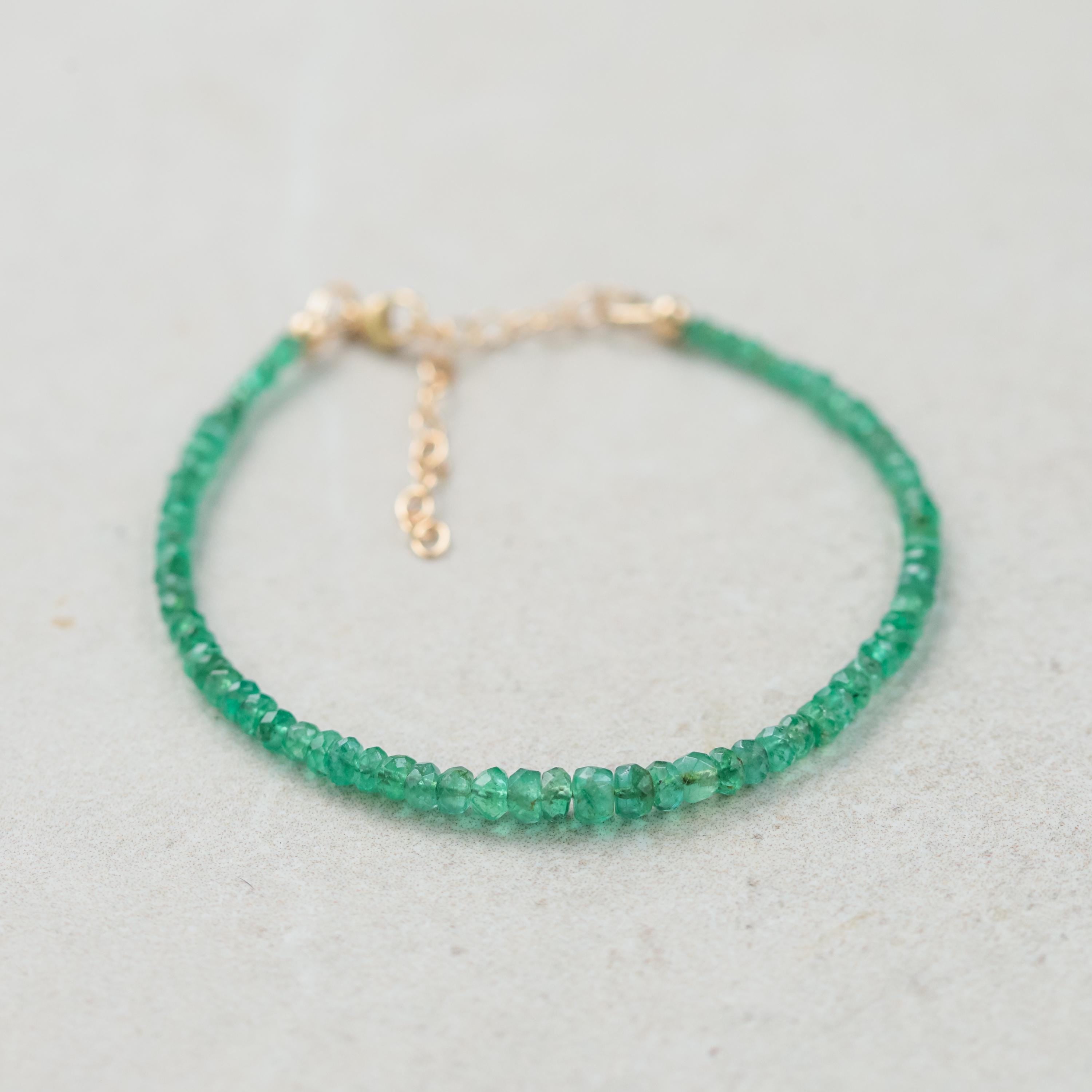 This one-of-a-kind bracelet is crafted with AAAA+ quality Zambian emeralds—untreated, undyed, and full of rich, natural clarity. Known for their deep green hue and understated elegance, Zambian emeralds offer a fresh perspective on a timeless stone. Finished with solid 14K gold components, this piece brings together intention, beauty, and lasting craftsmanship for effortless everyday wear.