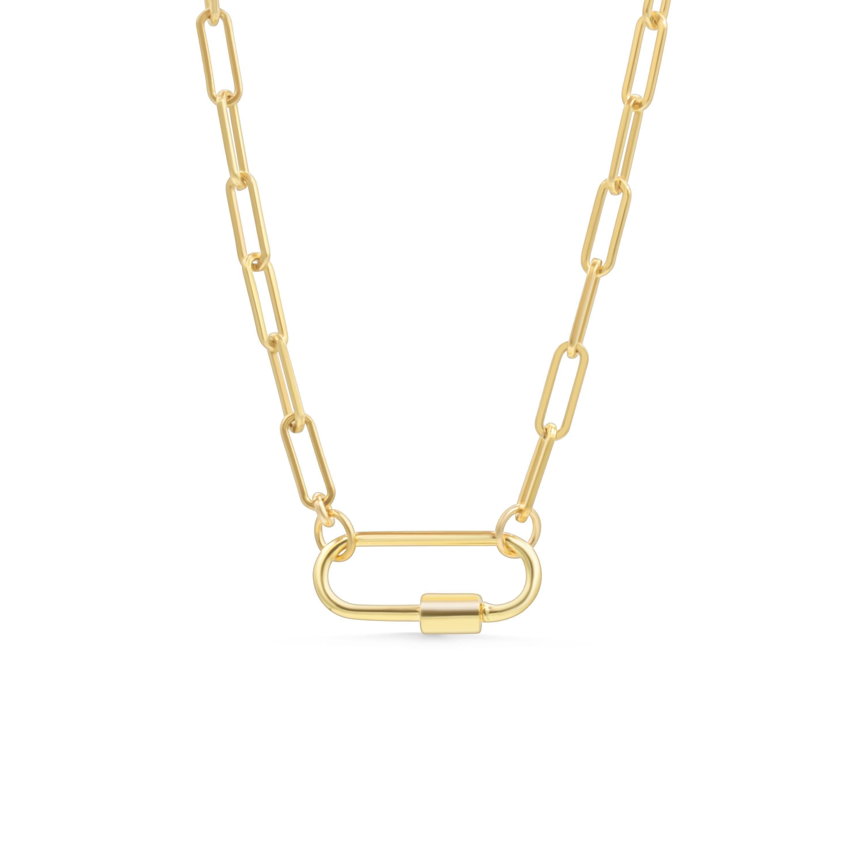 A bold, elevated essential crafted in high-quality 14K gold filled paperclip chain. Customize your look by choosing between two statement carabiner styles: