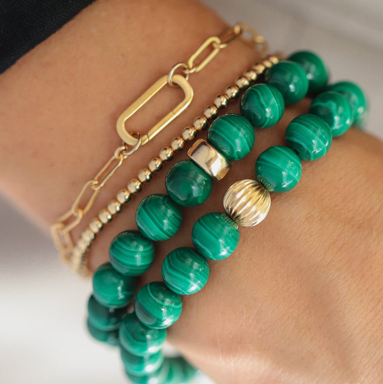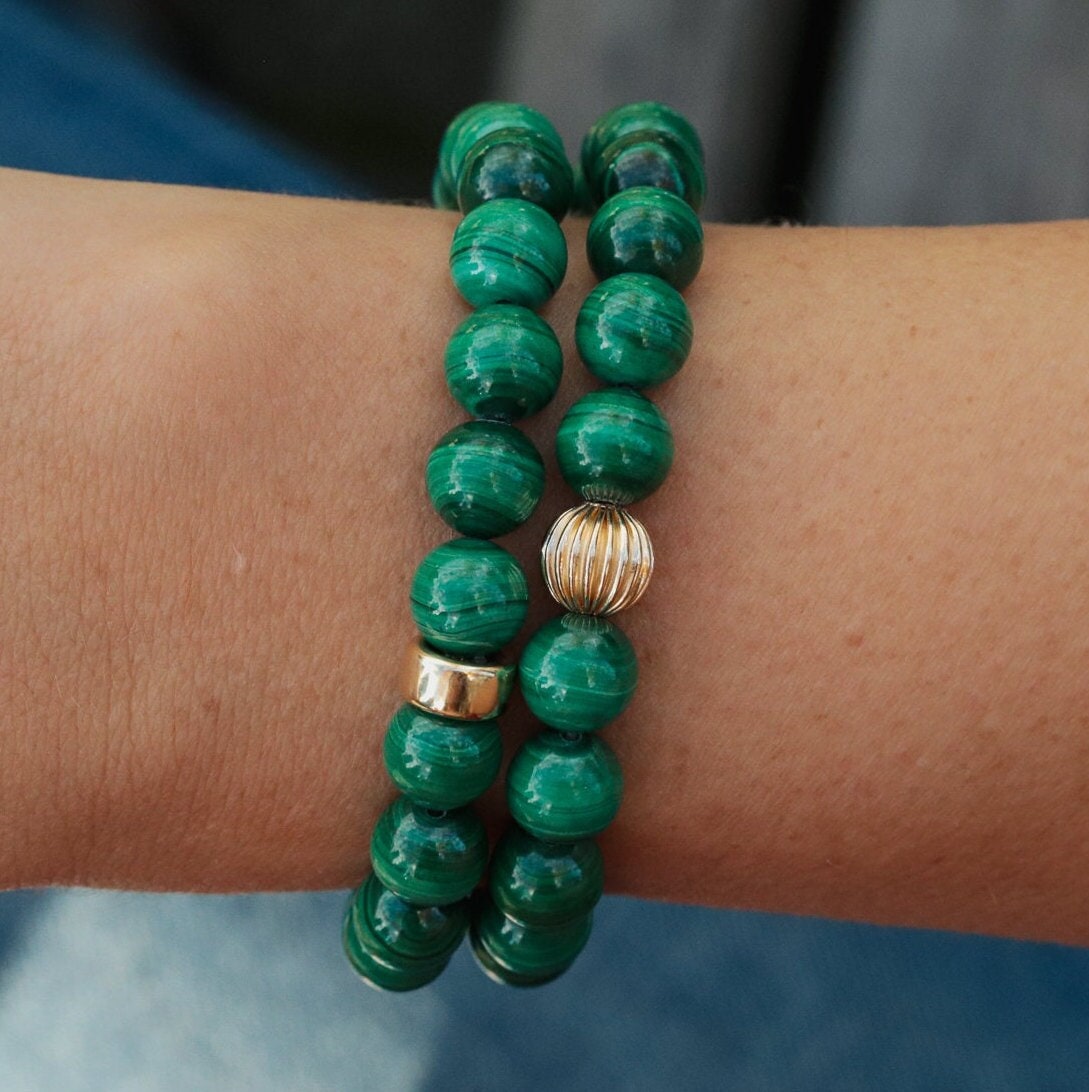 Crafted with vibrant 8mm malachite beads, this piece is a powerful companion for grounding, protection, and personal evolution. Choose a single style or opt for the set of two to receive one of each for effortless stacking.