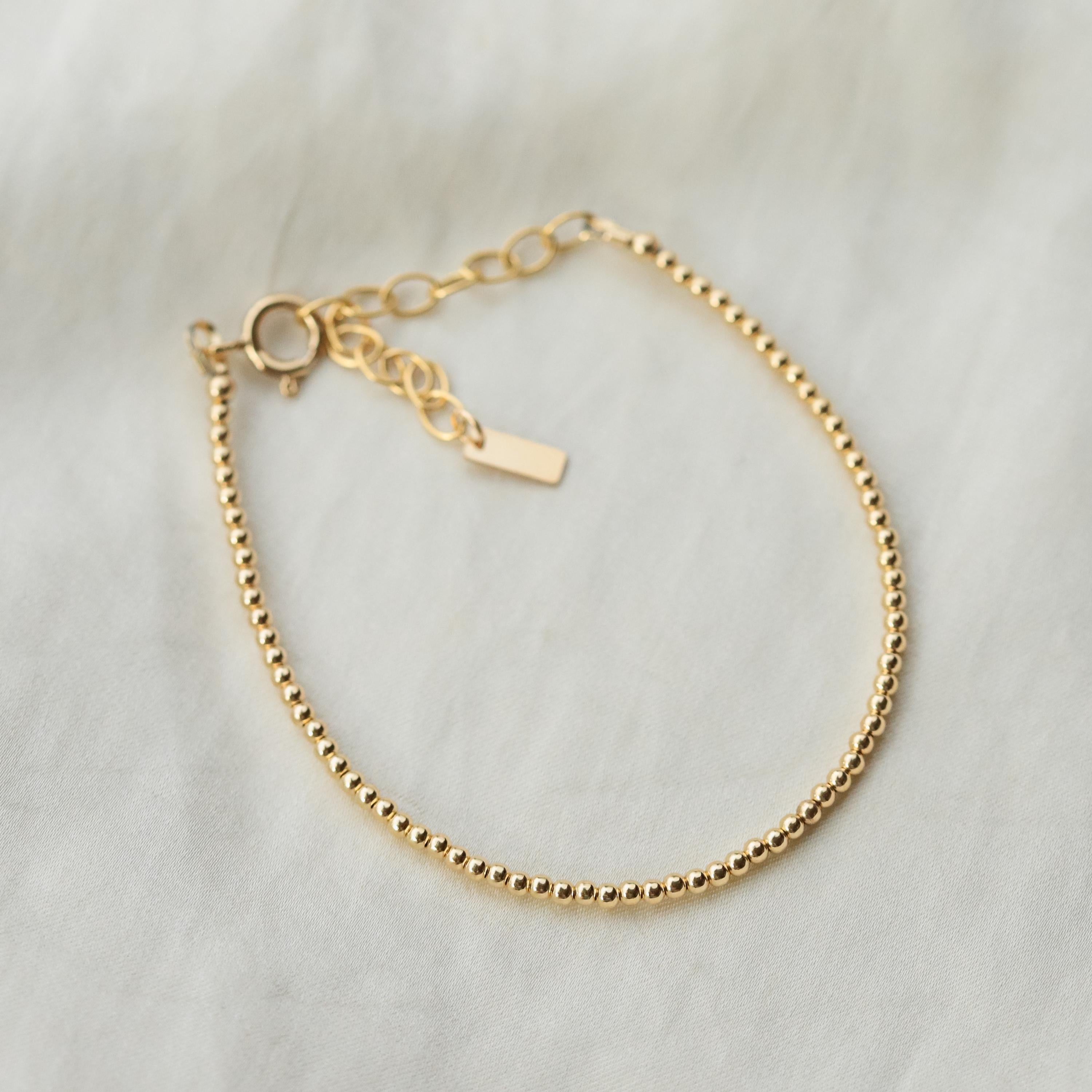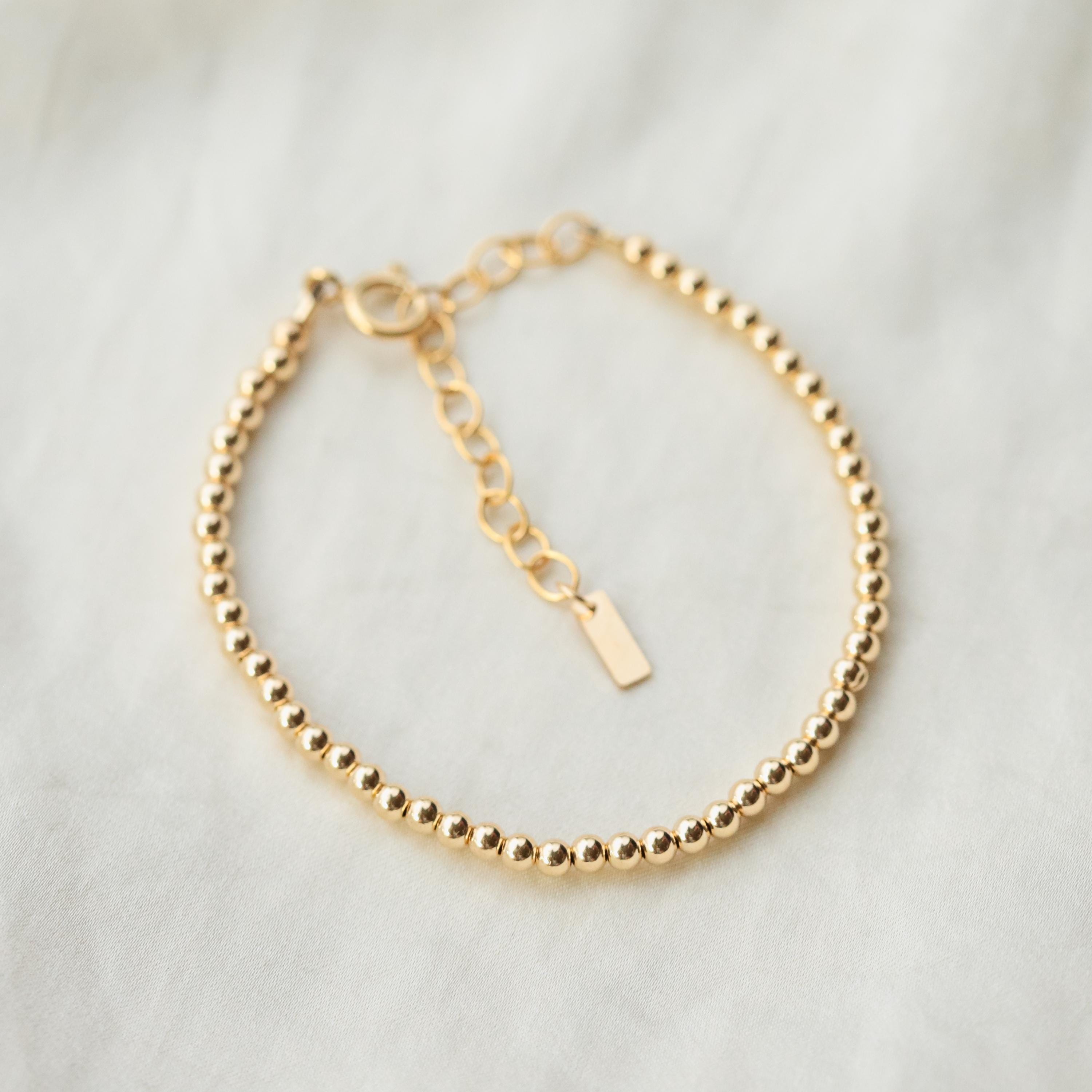 A refined staple for any jewelry collection, this bracelet is crafted from polished 14K gold filled beads in your choice of 2mm, 3mm, 4mm, or 5mm sizes. Finished with a 14K gold filled clasp and extender, it’s designed for everyday elegance—whether worn solo or layered into your favorite stack. For the ultimate look, choose the full set of four and enjoy all bead sizes together.