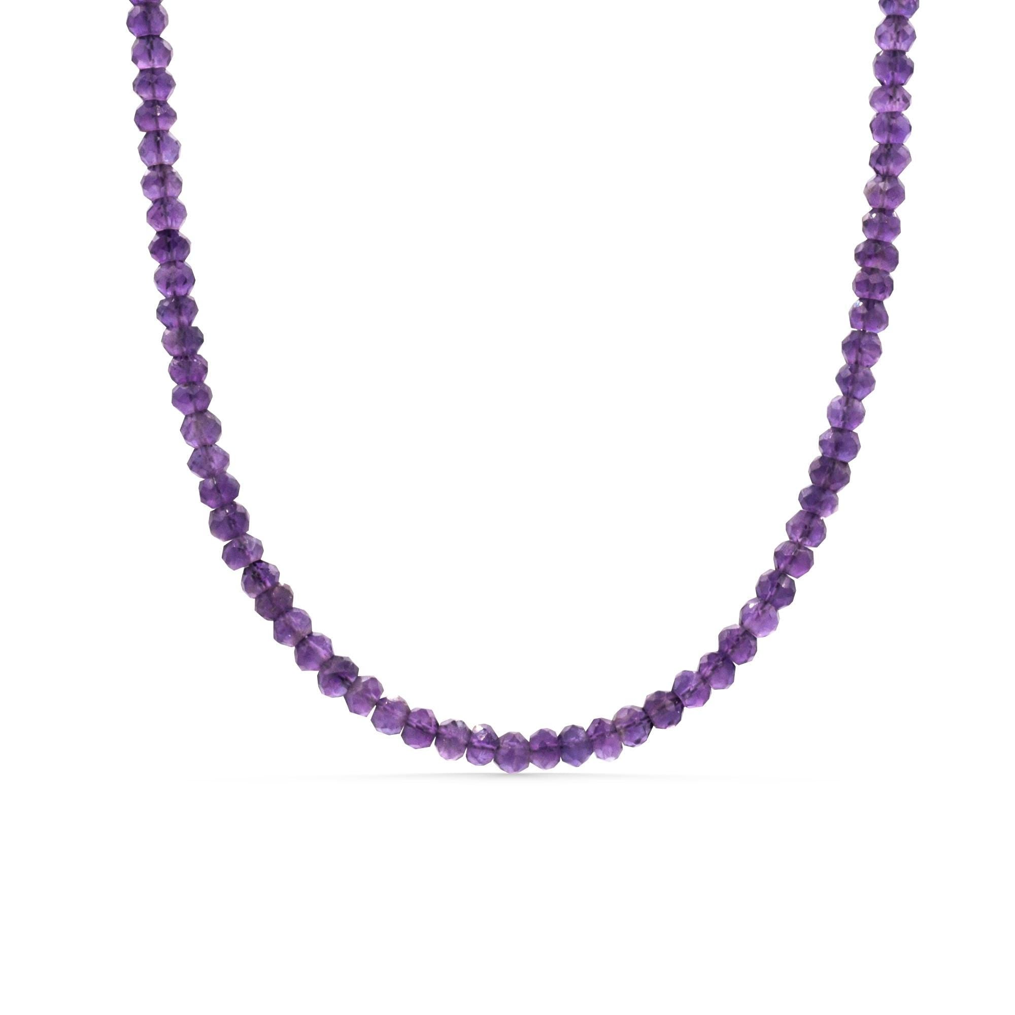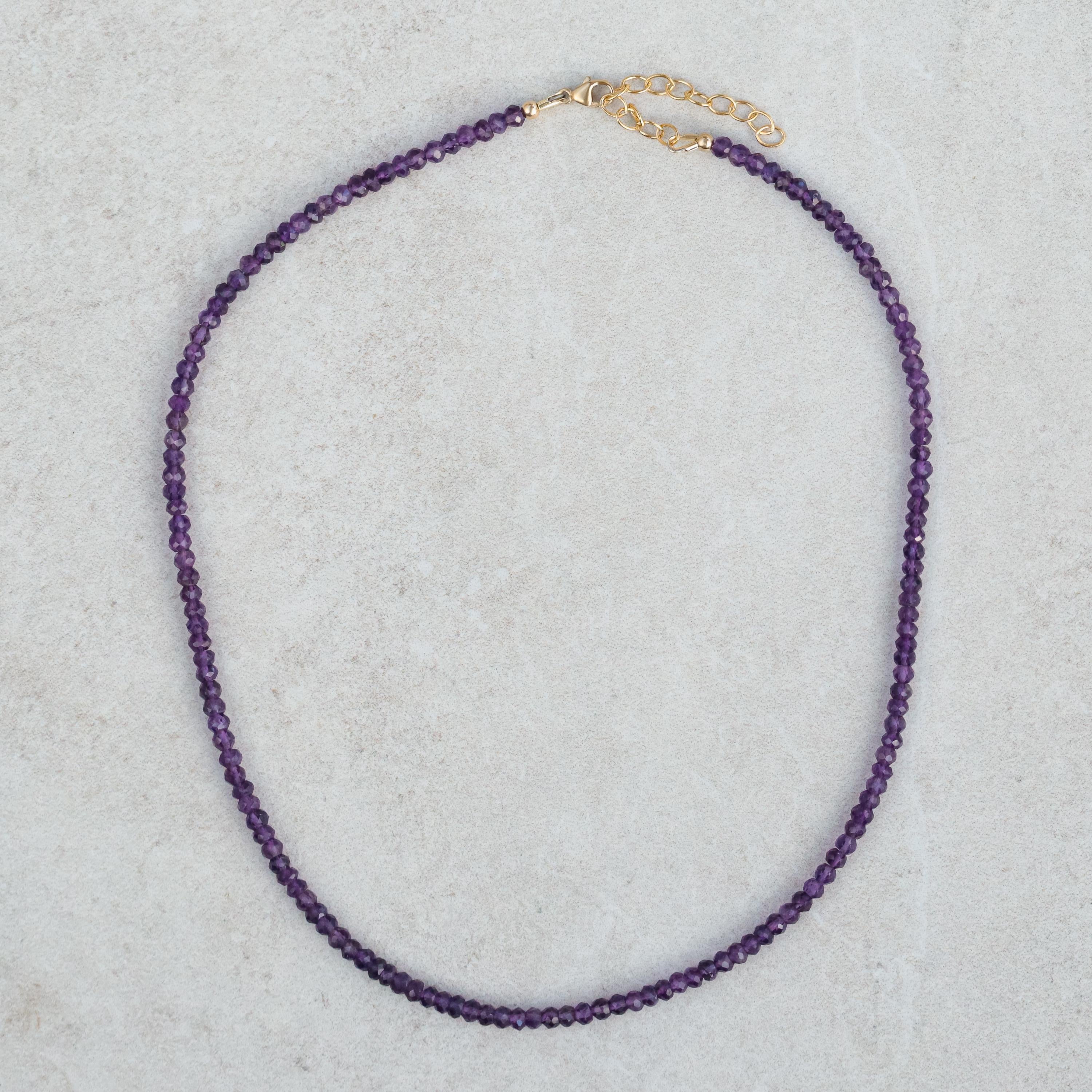 Details • Handmade in Canada • Genuine African amethyst • Stone size: approx. 3.5mm (faceted rondel cut) • Available in sterling silver or 14K gold filled • Lobster clasp with extender • Length: fits approximately 16–18" • 100% genuine gemstones