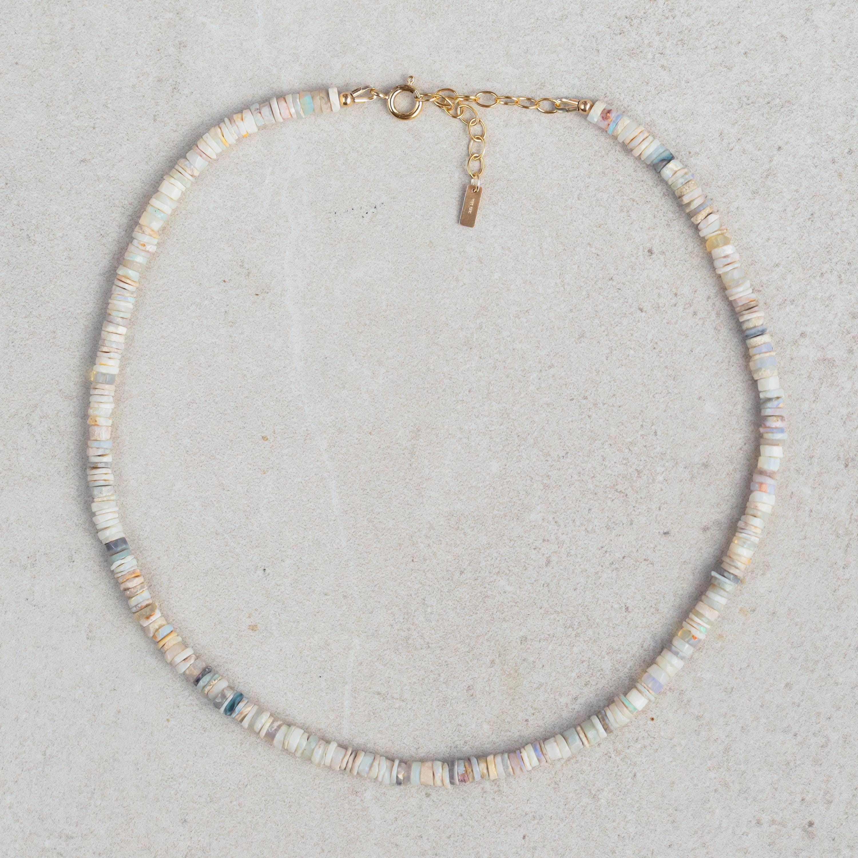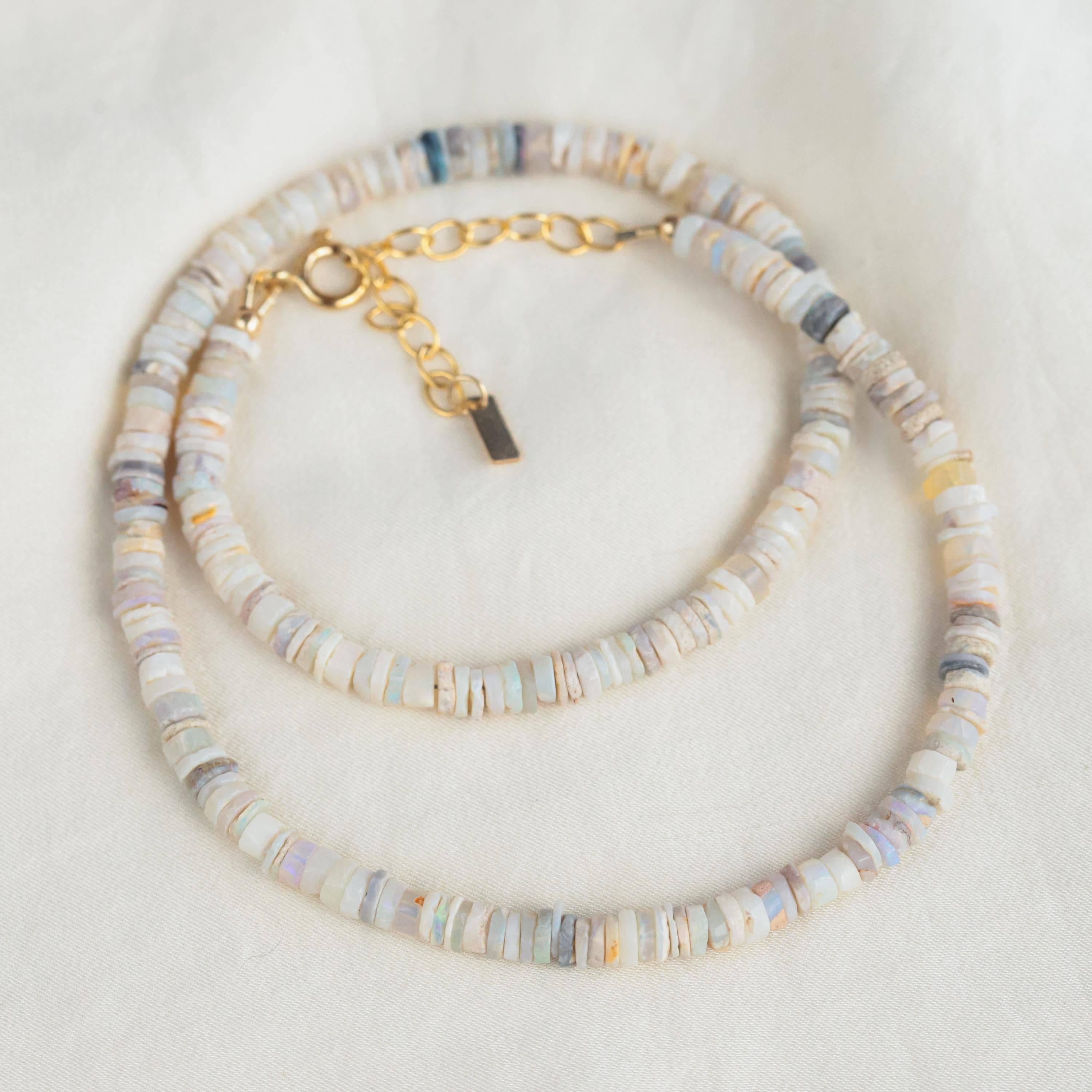 Soft and natural, this necklace features genuine Australian opal in a 4mm faceted heishi cut. Known for its subtle beauty and creamy tones, Australian opal carries a gentle energy — understated, earthy, and effortlessly wearable.