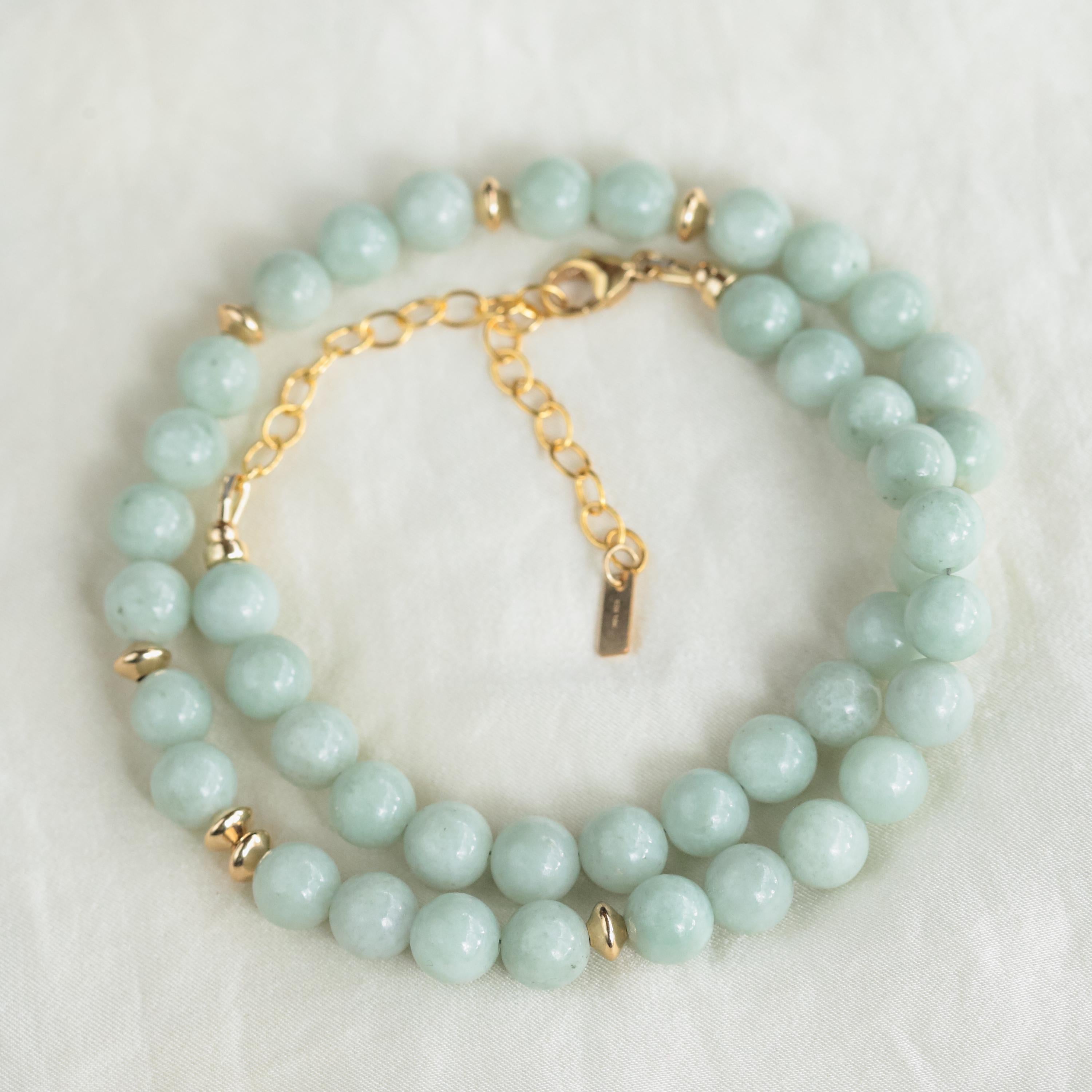 Choose the gemstone that speaks to your energy — each one offered in a smooth, timeless 8mm round cut. Whether you’re drawn to the deep harmony of Jadeite, the grounding strength of Black Tourmaline, the transformative richness of Malachite, or the intuitive clarity of Kyanite, each strand is intentionally designed to feel both earthy and refined. Finished with warm 14K gold filled findings, the gold adds a luminous contrast that elevates every stone beautifully.