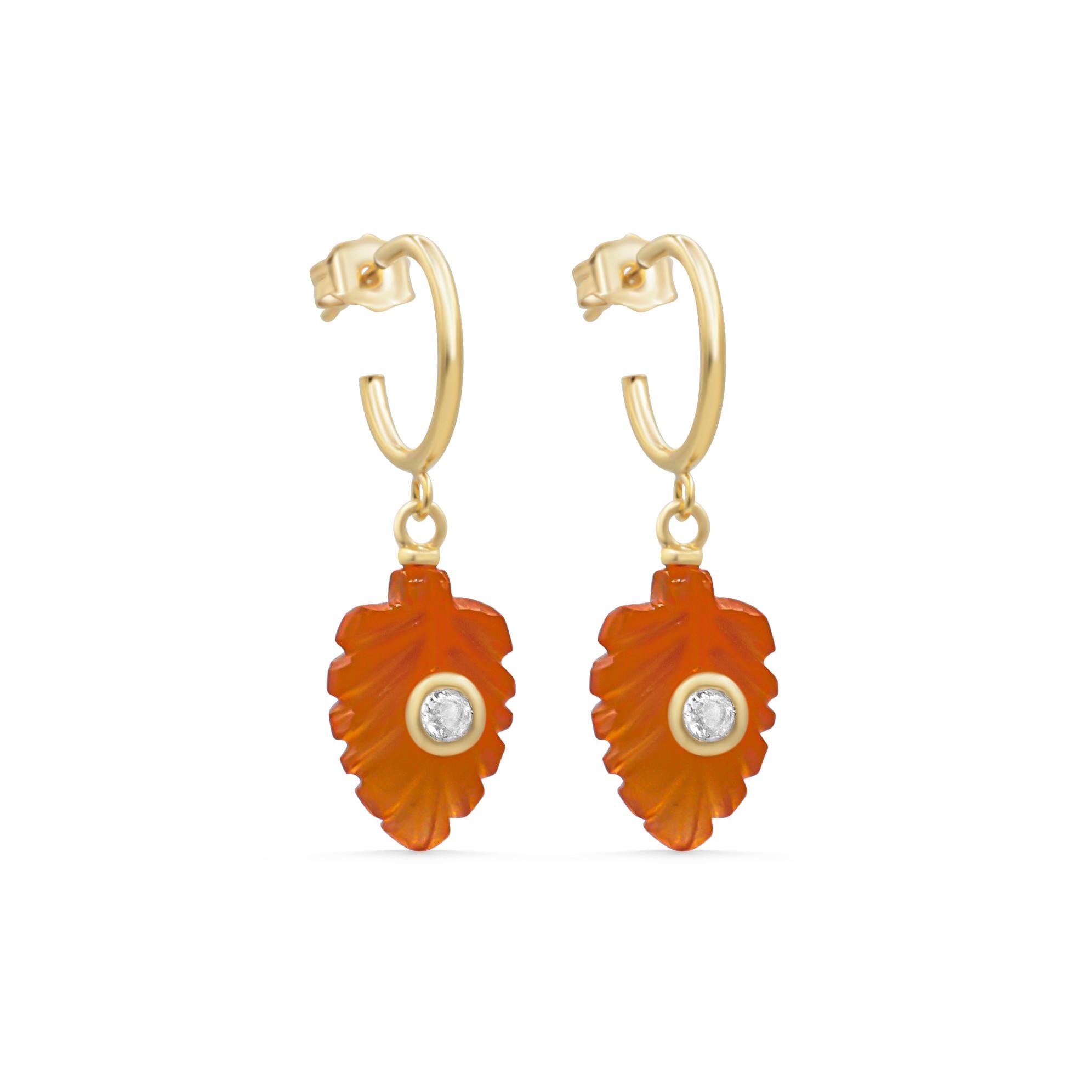 Rich and glowing, these earrings feature vibrant carnelian drops suspended from classic gold filled hoops. The deep, fiery orange tones bring warmth and energy, catching the light with every movement for a look that feels bold yet refined. Designed to move with you, they offer a perfect balance of everyday ease and statement presence.