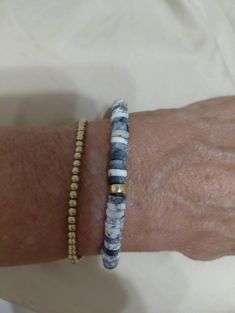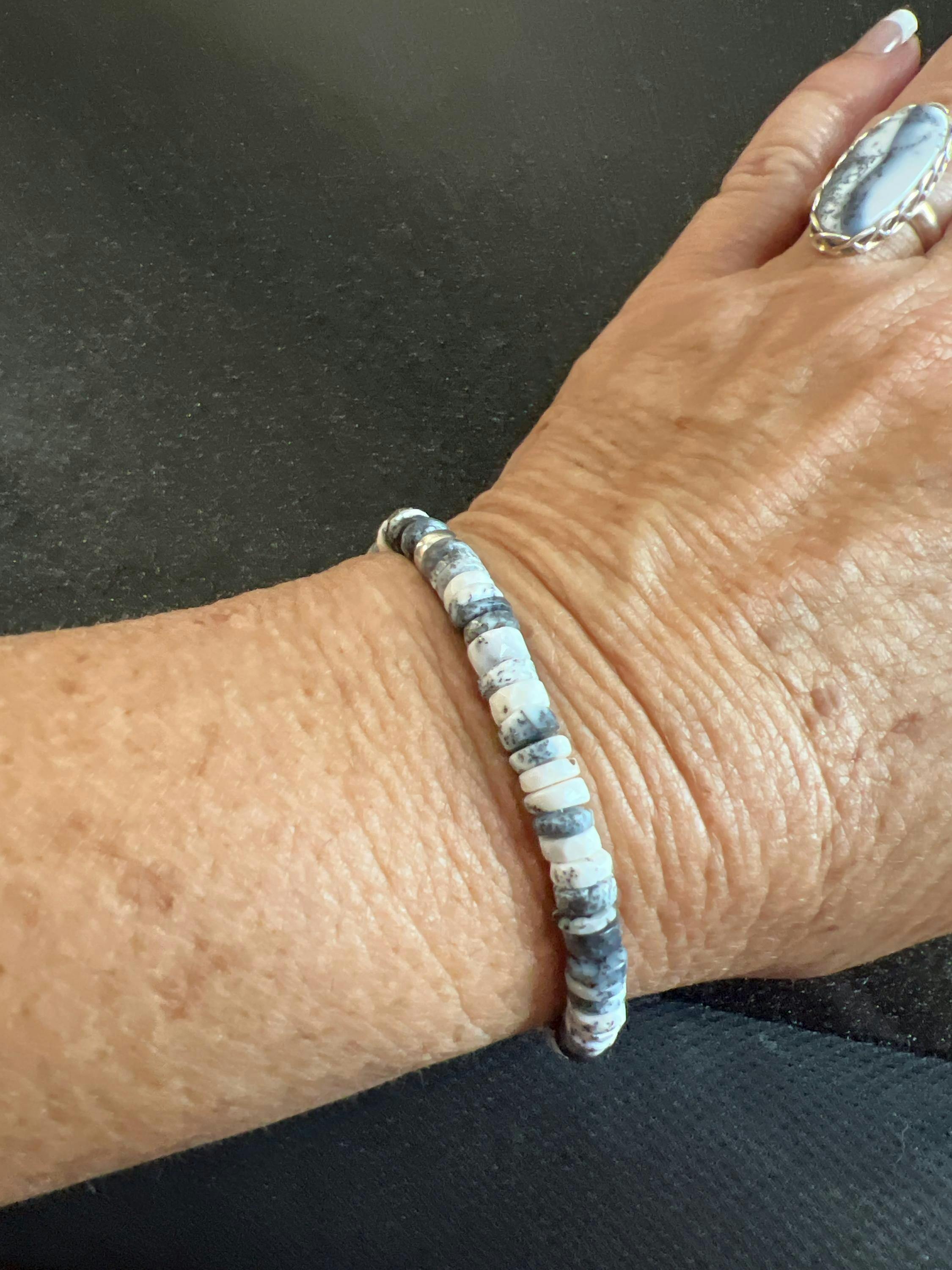 This unique bracelet features faceted dendritic opal with dark branch-like inclusions throughout. Ethereal yet grounded, dendritic opal is known to support growth, clarity, and connection to the natural world.