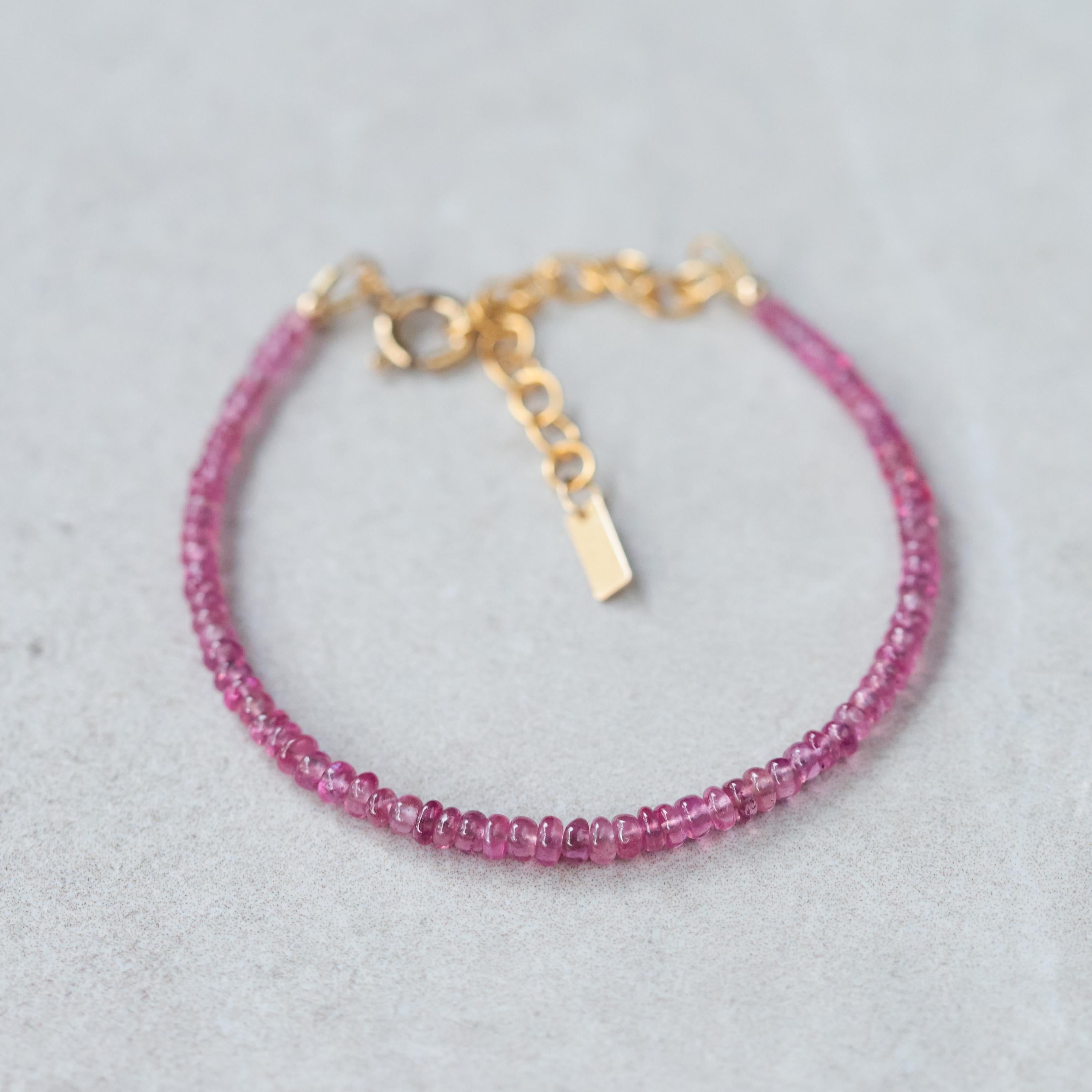 Details: • Genuine pink sapphire (approx. 3mm, smooth rondelle) • 14K gold filled clasp and extender • Adjustable fit: 6–8" • Handmade in Vancouver • 100% genuine gemstones