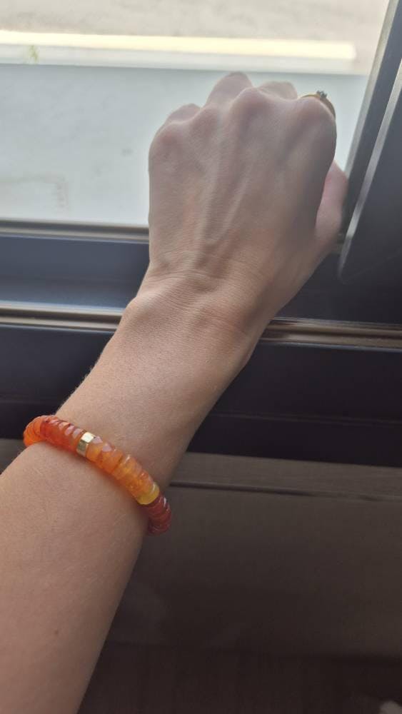 I was astonished with this carnelian bracelet/ Great colors and perfect fit.
