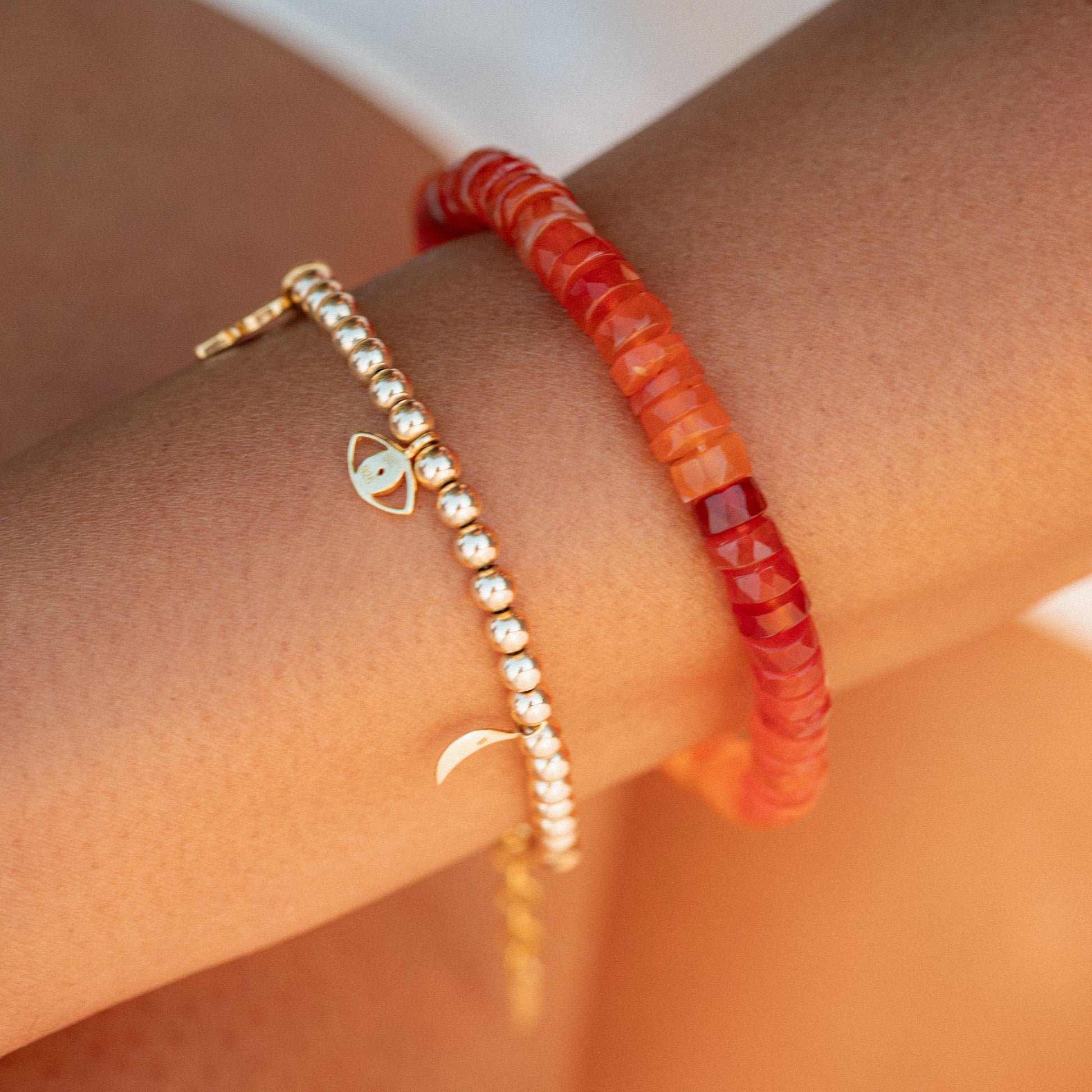 Super bright and fiery, this Carnelian heishi bracelet is pure happiness in gemstone form! With its uplifting energy, sparkly faceted cut, and stunning ombre tones, it adds depth and dimension to every look.