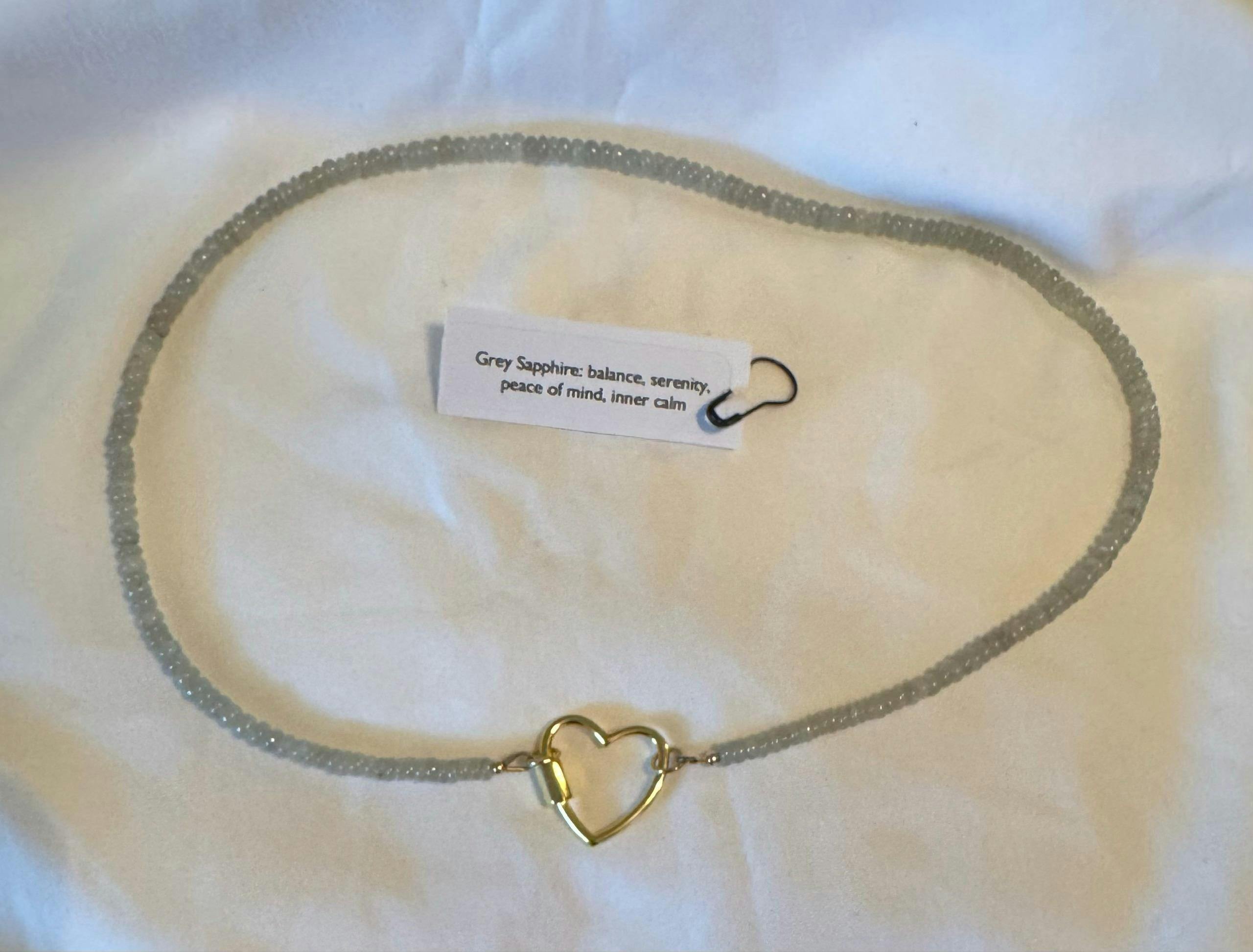 A serene strand of smooth, natural grey sapphire—known for its quiet strength and grounding energy. The soft, smoky tone and subtle shimmer make this necklace a versatile choice for layering or solo wear.