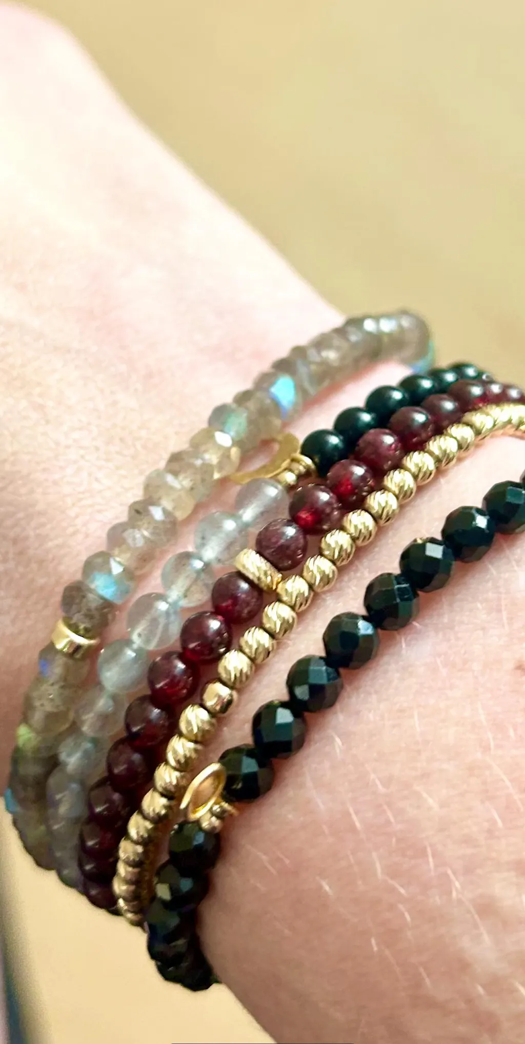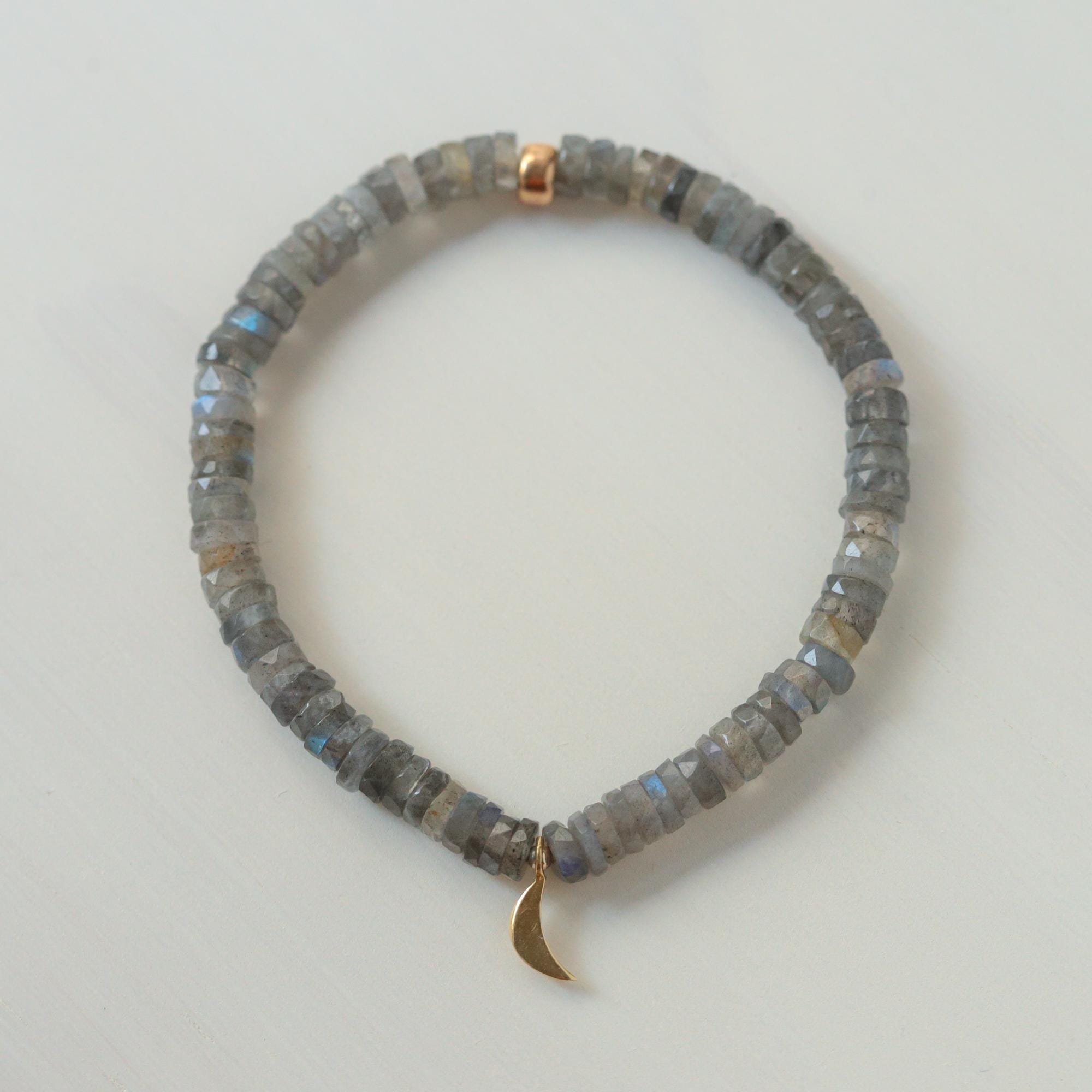 Details • Handmade in Canada • Genuine labradorite (approx. 5 mm faceted heishi / rondelle) • Stretch style — easy to slip on, no clasp • 100% genuine gemstones