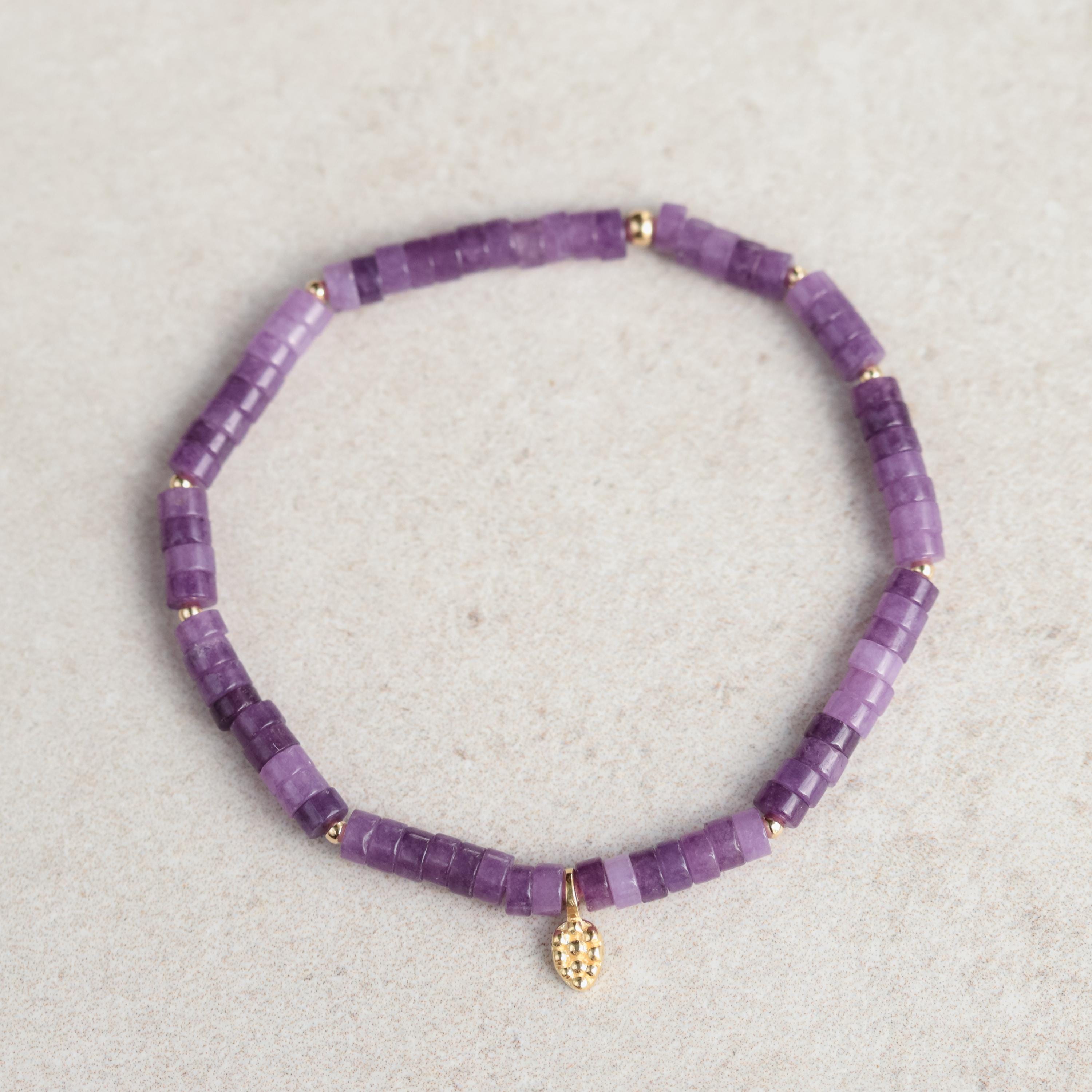 This bracelet features genuine lepidolite in a smooth 4mm heishi cut, displaying soft lavender and lilac tones with natural shimmer. Gentle and grounding, it’s an easy everyday piece—beautiful worn on its own or stacked with your favorite gemstone bracelets.