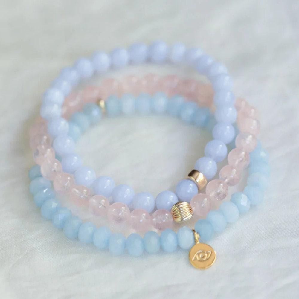 Crafted with AAAA+ grade 6mm morganite beads, each bracelet is available with your choice of sterling silver, 14K gold filled, or solid 14K gold accents. Choose the style that resonates with your energy and your stack: – Smooth rondel accent – Corrugated accent – Or a set of two (one of each)