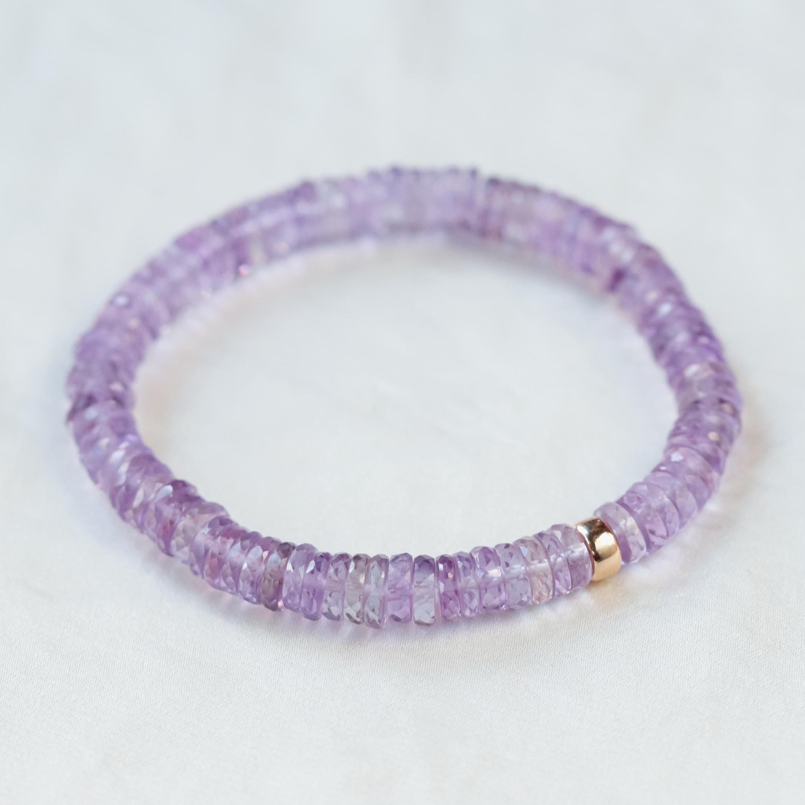 Soft, luminous, and full of quiet magic — this pink amethyst bracelet captures the gentlest side of amethyst’s energy. The rare faceted heishi cut creates a refined sparkle, while the naturally blush-toned stones offer a serene, intuitive presence you can feel throughout your day.