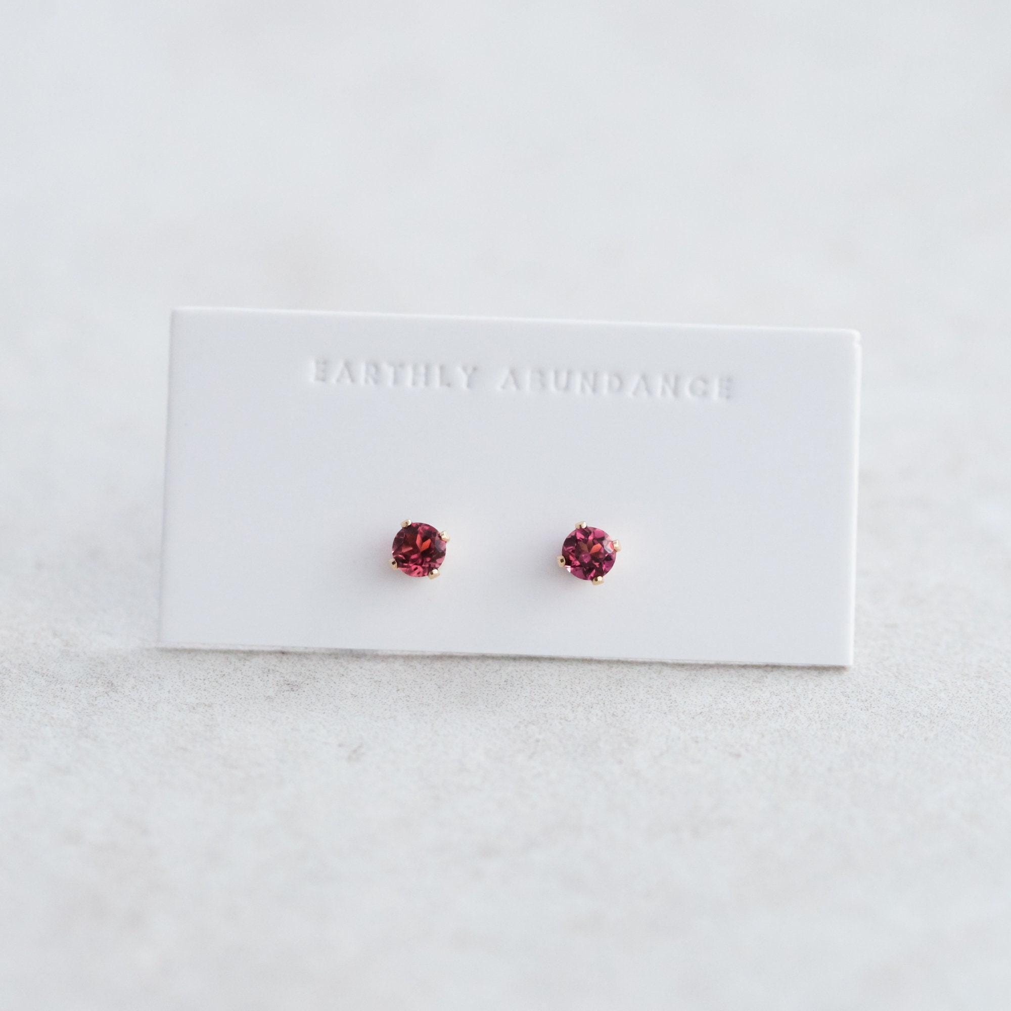• Solid 14K gold settings • Genuine 4mm pink tourmaline gemstones • Handmade in Vancouver • Safe for sensitive skin • Crafted for enduring beauty