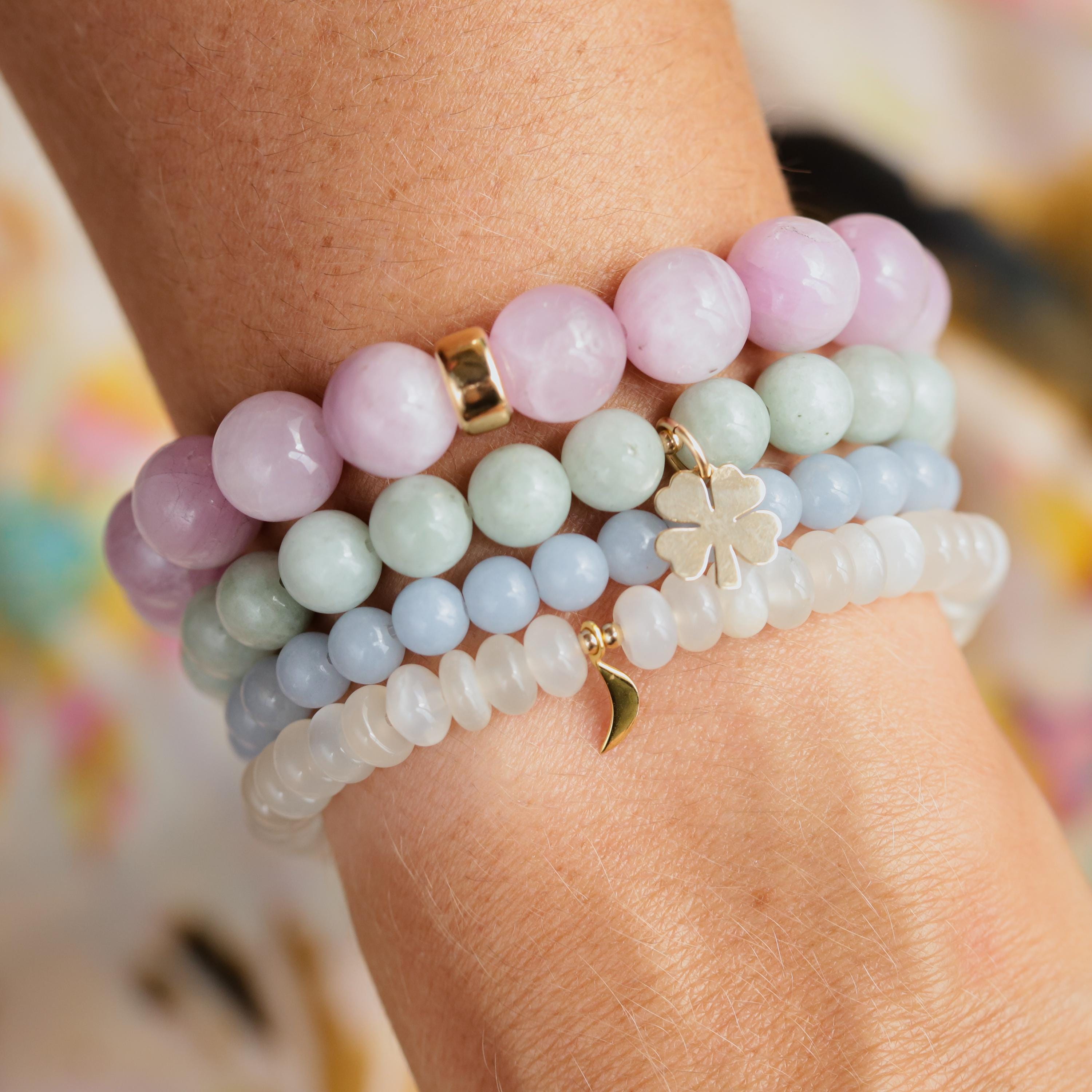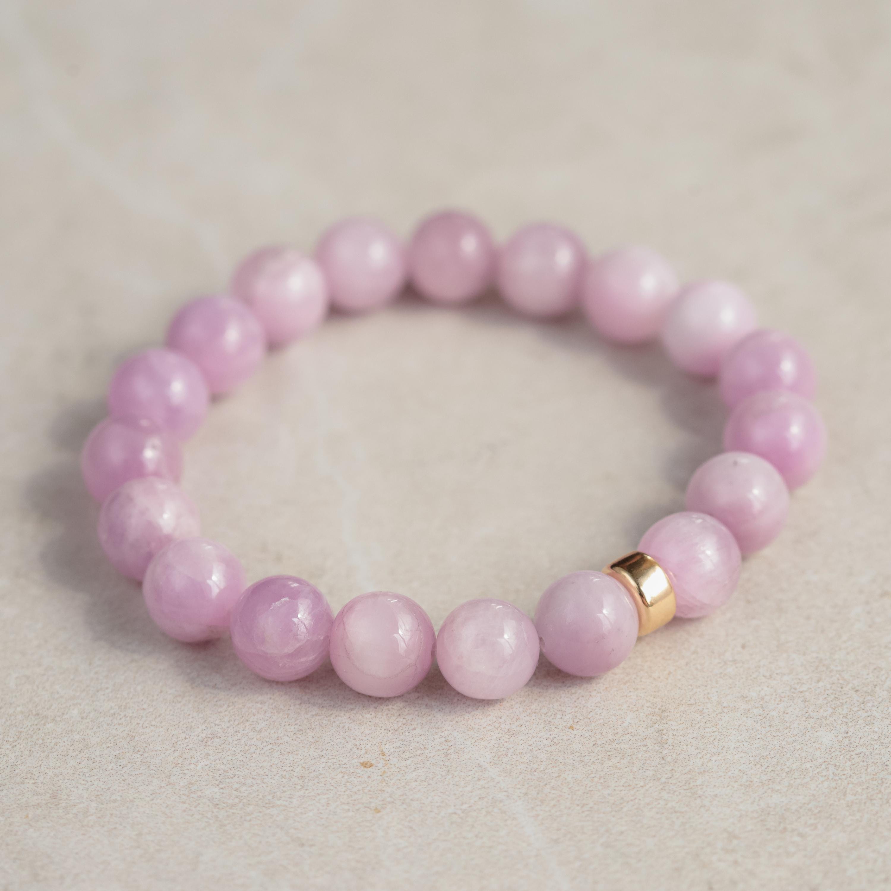 Bold, feminine, and full of soothing energy — this chunky Kunzite bracelet is both playful and ethereal. Known as a stone of empowerment, love, healing, and hope, Kunzite radiates calm and emotional strength. Its soft, dreamy color adds a beautiful touch to any jewelry stack or stands strong on its own as a statement piece.