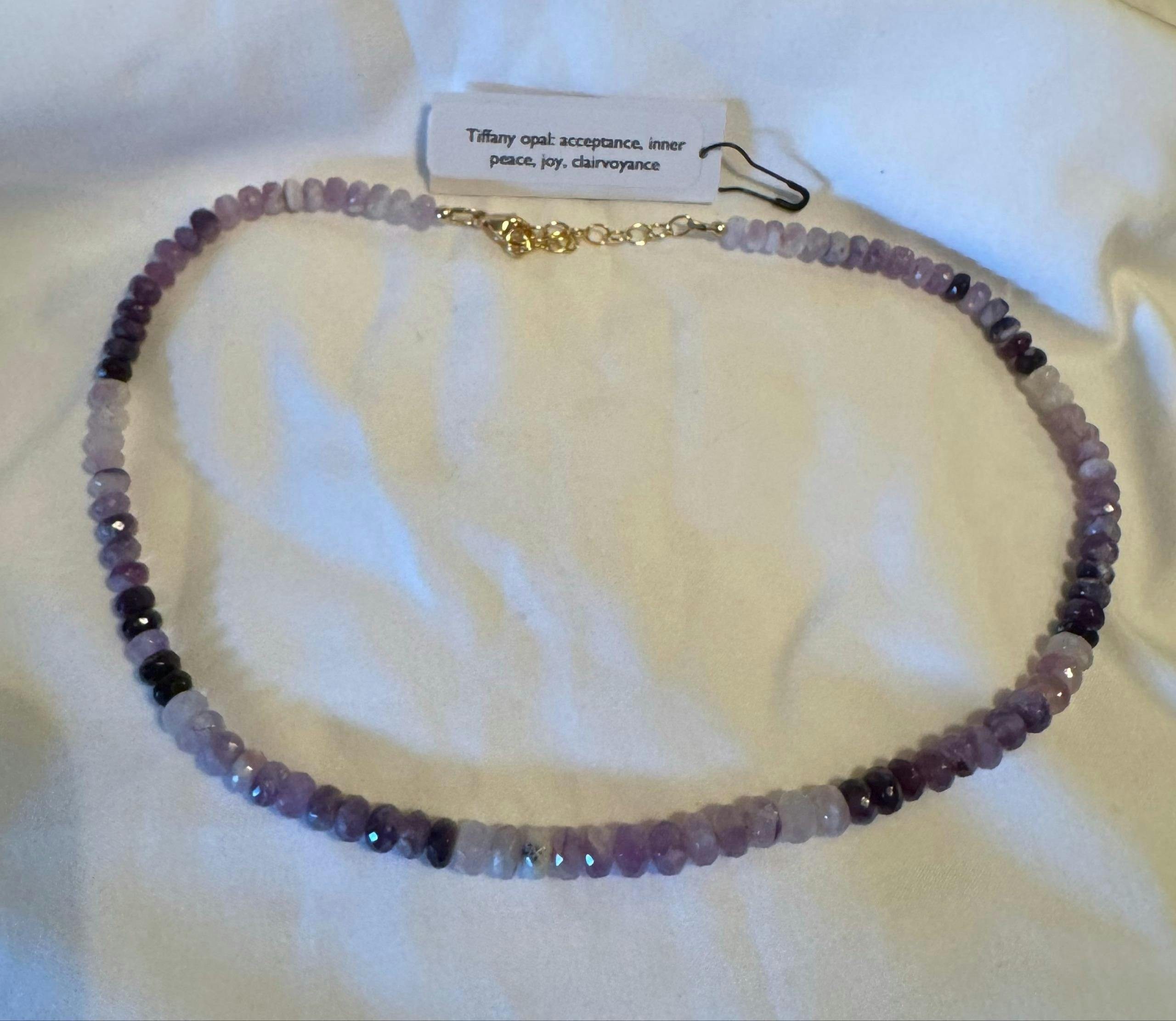 △ Handmade in Canada △ Genuine Tiffany Opal [natural] △ Faceted rondel cut △ 14K gold filled clasp and extender △ Gemstones are 100% genuine