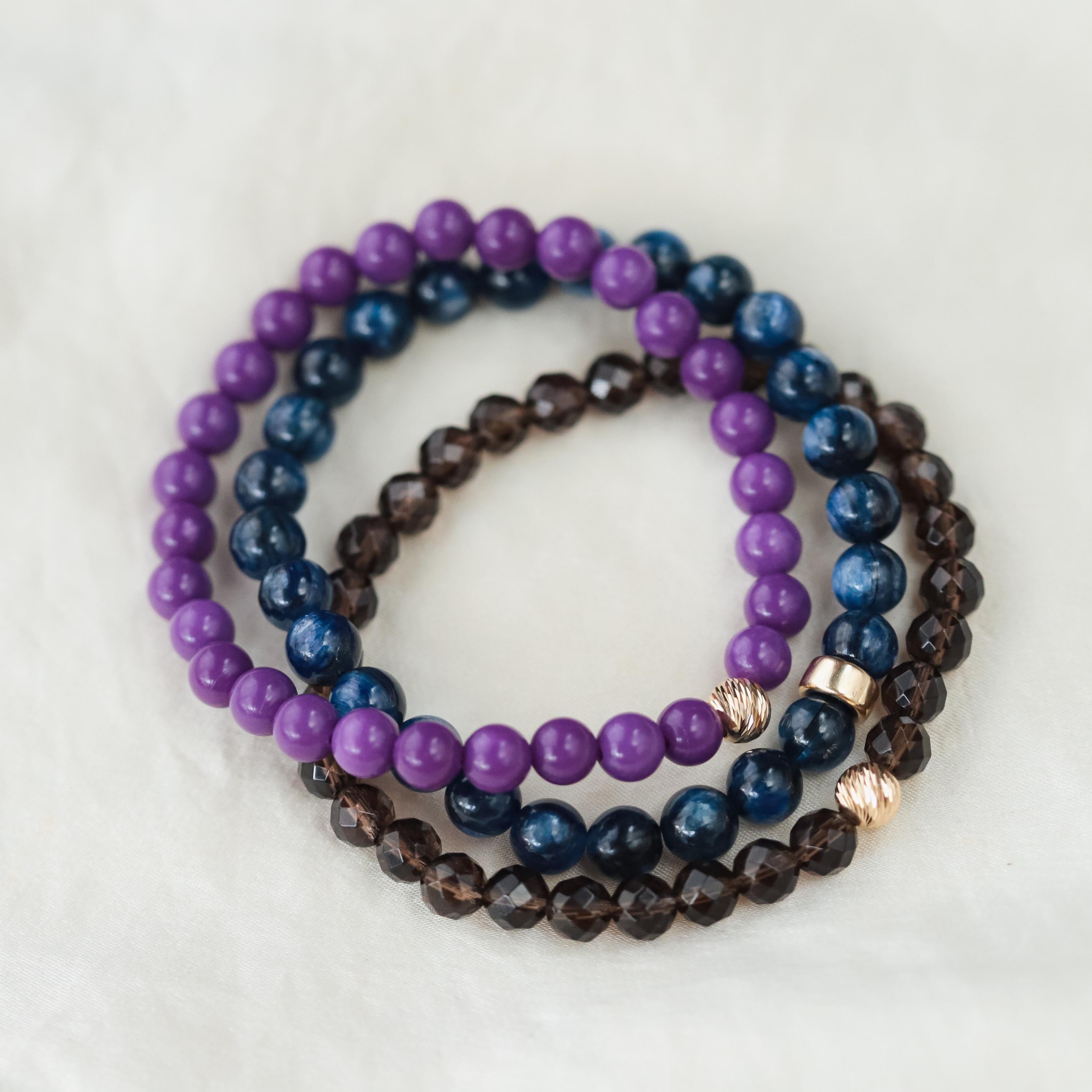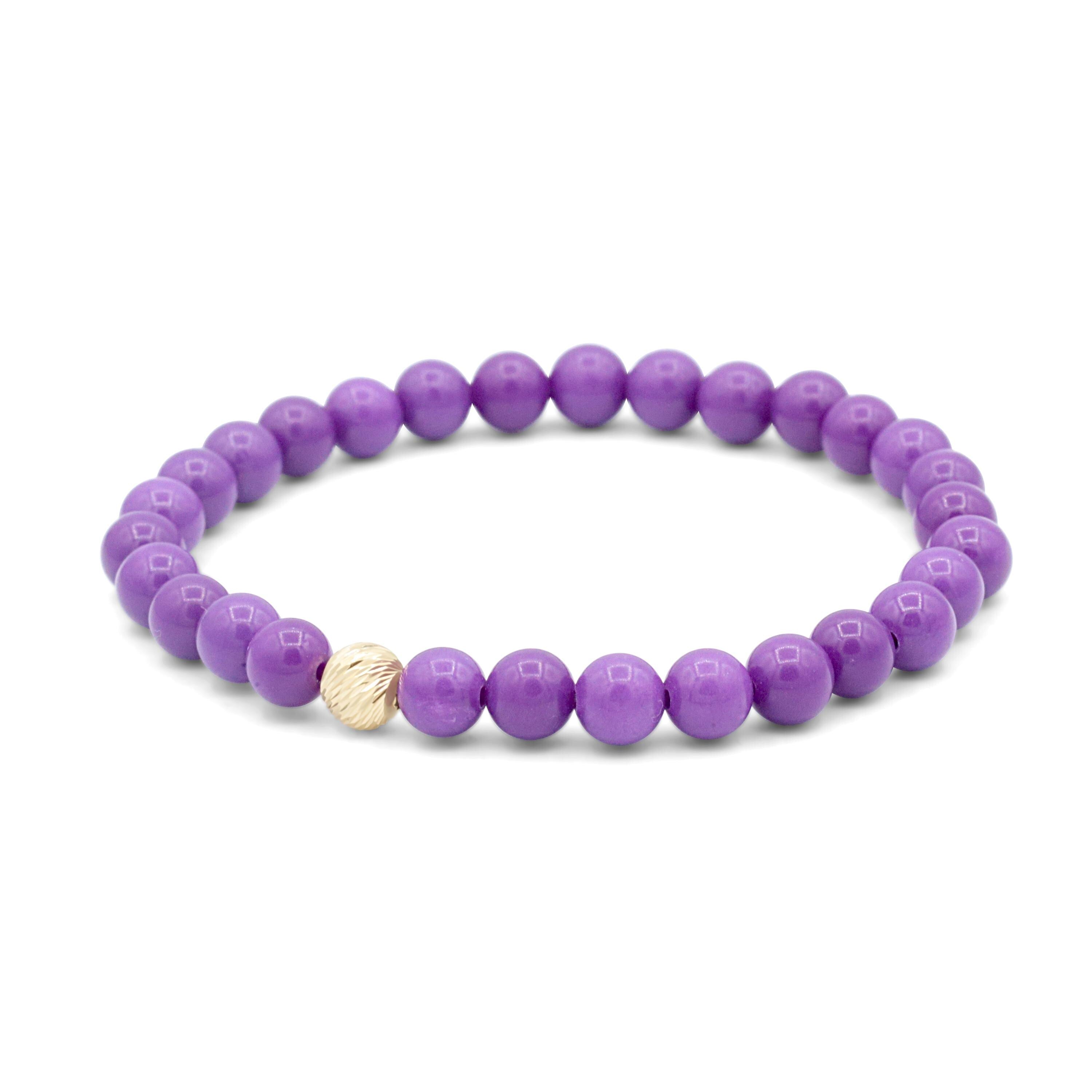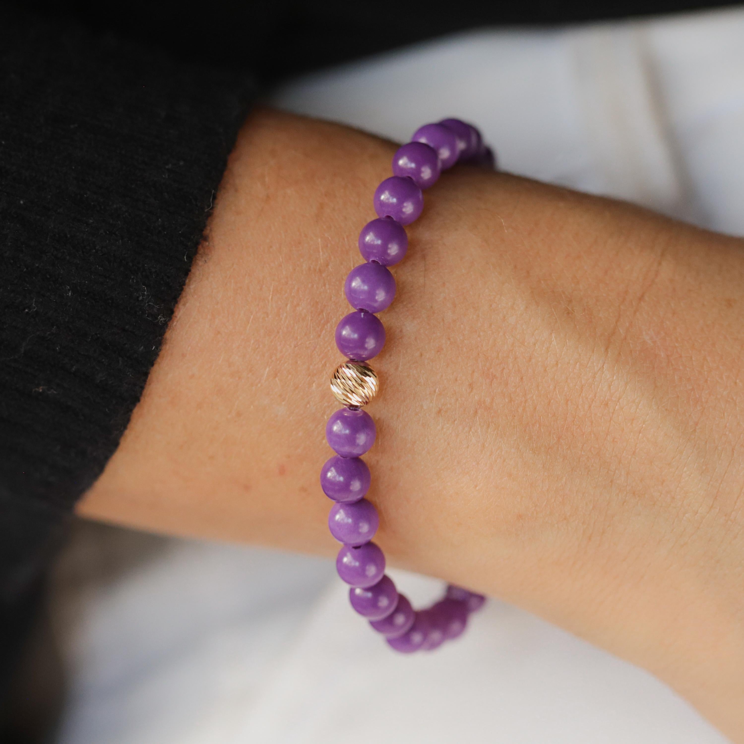 Beautifully made phosphosiderite bracelet. The shade of purple is lovely and very well accented by a simple gold bead. Delivery was quick, too. Very satisified repeat customer!