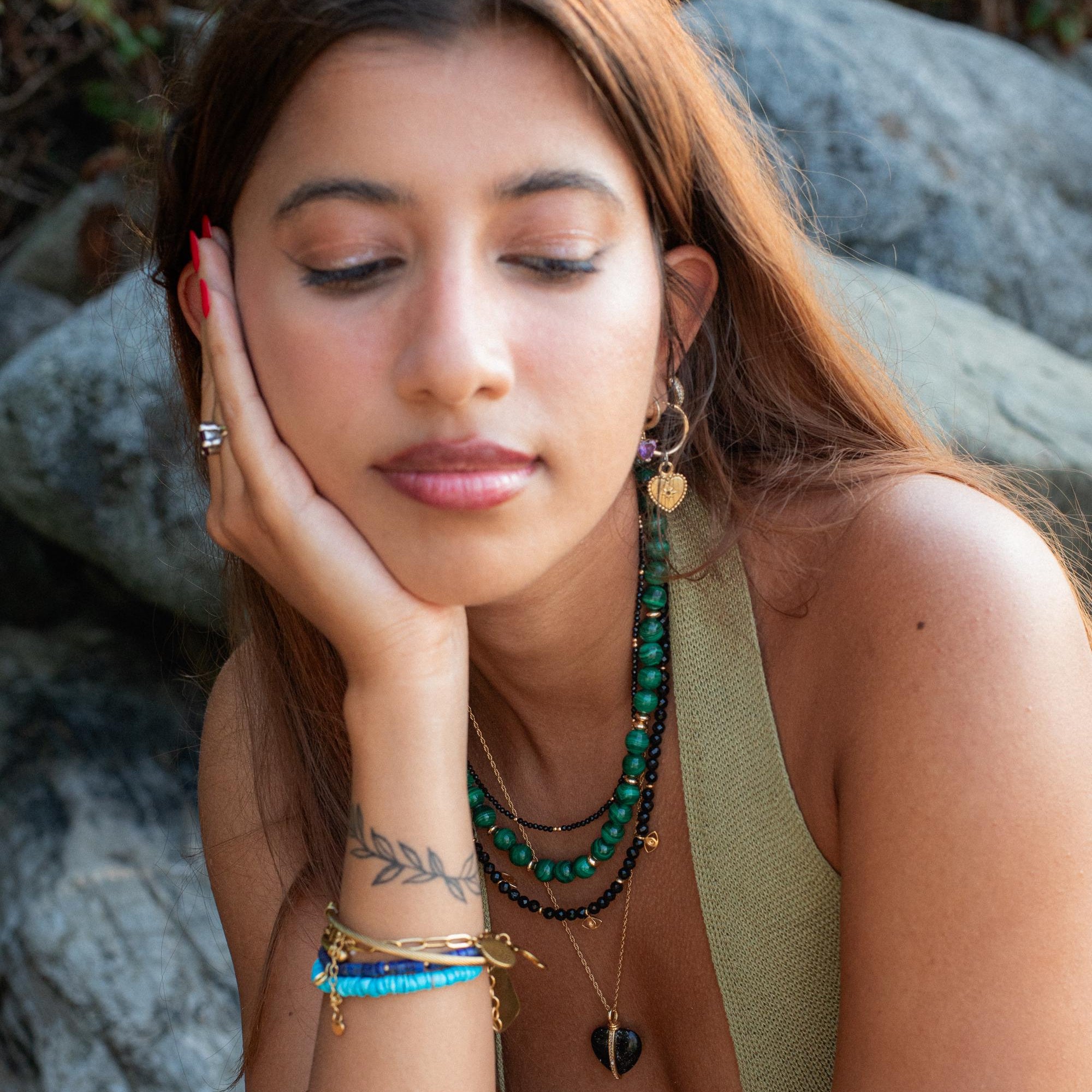 This striking four-piece stack blends the vibrant energy of malachite with the grounding power of black gemstones. Handcrafted in Vancouver with 14K gold filled and gold vermeil details, the set is designed for versatility, symbolism, and timeless style. Layer them together for bold impact or wear individually for a touch of everyday strength.